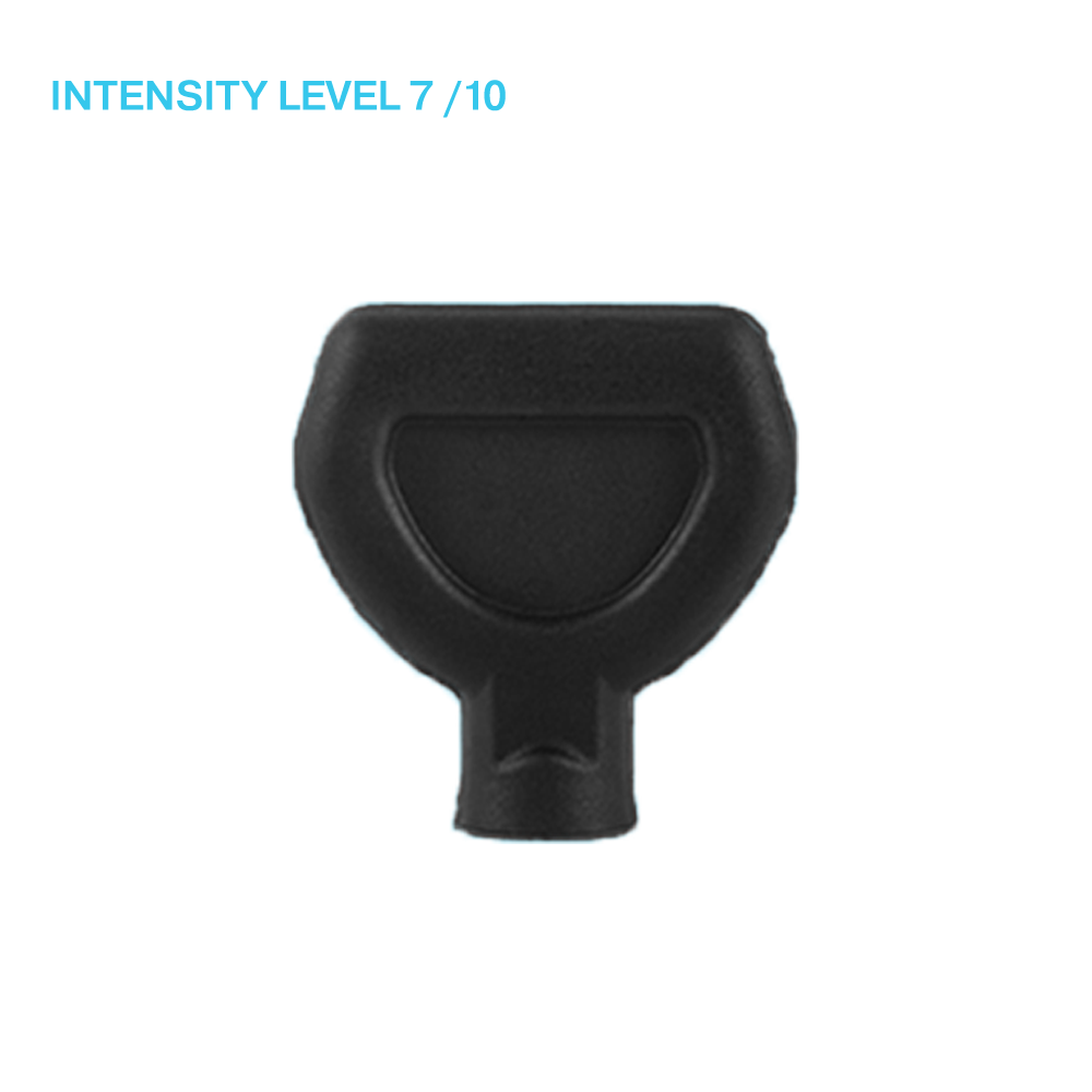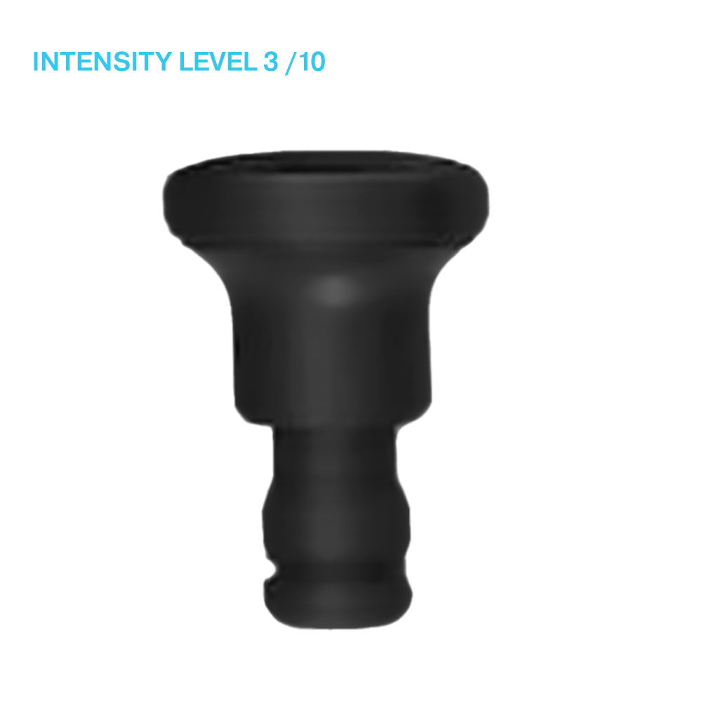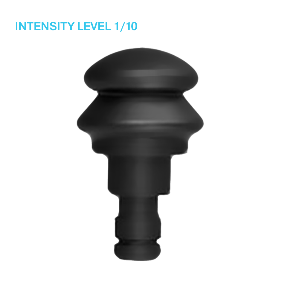 The dampener attachment can be used perfectly for sensitive muscles. With a low intensity level, this attachment ensures good blood flow to the muscle without applying "deep tissue" massage.