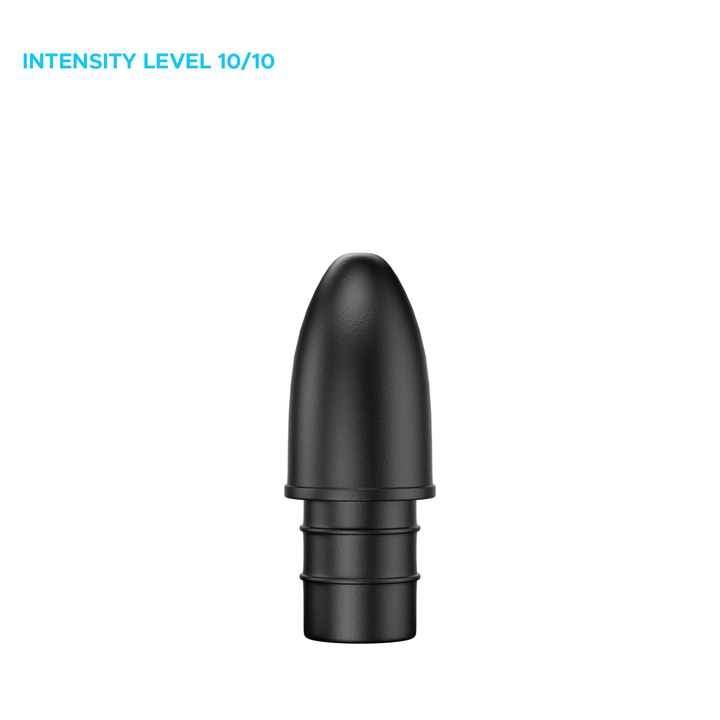 Het Bullet opzetstuk kan evenals het Finger opzetstuk perfect gebruikt worden om "deep tissue" massage toe te passen. Het voordeel van het Bullet opzetstuk ten opzichte van het Finger opzetstuk is dat deze nauwkeuriger tot een (pijnlijke)spier doordringt. Hiermee kunt u precies het pijnlijke plekje targetten zonder dat de omliggende spieren geraakt worden. Let er op dat na een sessie met het Bullet opzetstuk de spier breus kan aanvoelen. Dit is normaal en trekt gemiddeld na 1 dag weg.